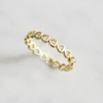 ANILLO DE PLATA 925 CON BAÑO DE ORO AMARILLO, CINTILLO DE CORAZONES CALADOS