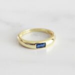 ANILLO DE PLATA 925 CON BAÑO DE ORO AMARILLO Y CIRCÓN RECTANGULAR AZUL