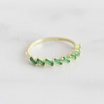 ANILLO DE PLATA 925 CON BAÑO DE ORO AMARILLO, MEDIO CINTILLO DE CIRCONES BAGUETTES COLOR VERDE