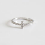 ANILLO DE PLATA 925 CON BAÑO DE ORO, DISEÑO DE CRUZ CON CIRCONES