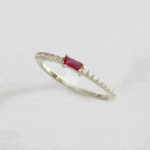 ANILLO DE PLATA 925 CON BAÑO DE ORO AMARILLO, MEDIO CINTILLO CON CIRCONES BLANCOS Y CIRCÓN BAGUETTE ROJO