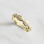 ANILLO DE PLATA 925 CON BAÑO DE ORO AMARILLO, ÓVALOS CON UNA FILA DE CIRCONES
