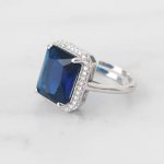 ANILLO DE PLATA 925,CON BAÑO DE ORO RESINA AZUL RECTANGULAR CON BORDE DE CIRCONES
