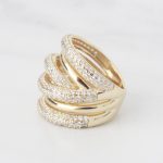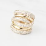 ANILLO DE PLATA 925 CON BAÑO DE ORO AMRILLO,VARIAS FILAS EN OLAS PAVÉ DE CIRCONES
