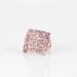 ANILLO DE PLATA 925 CON BAÑO DE ORO ROSA, DISEÑO CUADRADO CON CIRCONES MORADOS