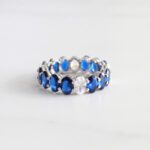 ANILLO DE PLATA 925 CON BAÑO DE RODIO, CINTILLO DE CIRCONES AZULES