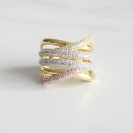 ANILLO DE PLATA 925 CON BAÑO DE ORO AMARILLO , FORMA ESTORCHADO CON CIRCONES