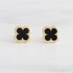 ARETE DE PLATA 925 CON BAÑO DE ORO AMARILLO, TRÉBOL DE RESINA NEGRA CON UN BORDE DE CIRCONES