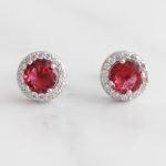 ARETES DE PLATA 925 CON BAÑO DE RODIO, CIRCÓN REDONDO ROJO CON BORDE DE CIRCONES BLANCOS