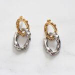 ARETES DE ACERO, DOS ARGOLLAS LABRADAS EN TONO AMARILLA Y BLANCA