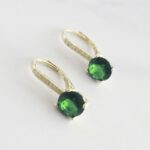 ARETES AZA DE PLATA CON CIRCONES BLANCOS Y CIRCÓN VERDE