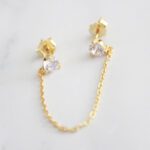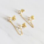 ARETES DE PLATA 925 CON BAÑO DE ORO AMARILLO, CADENA CON CIRCONES