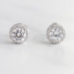 ARETES DE PLATA 925 CON BAÑO DE ORO, CIRCÓN REDONDO CON BORDE DE CIRCONES