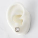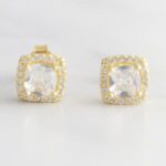 ARETES DE PLATA 925 CON BAÑO DE ORO AMARILLO, CIRCÓN CUADRADO BLANCO Y BORDE DE CIRCONES BLANCOS
