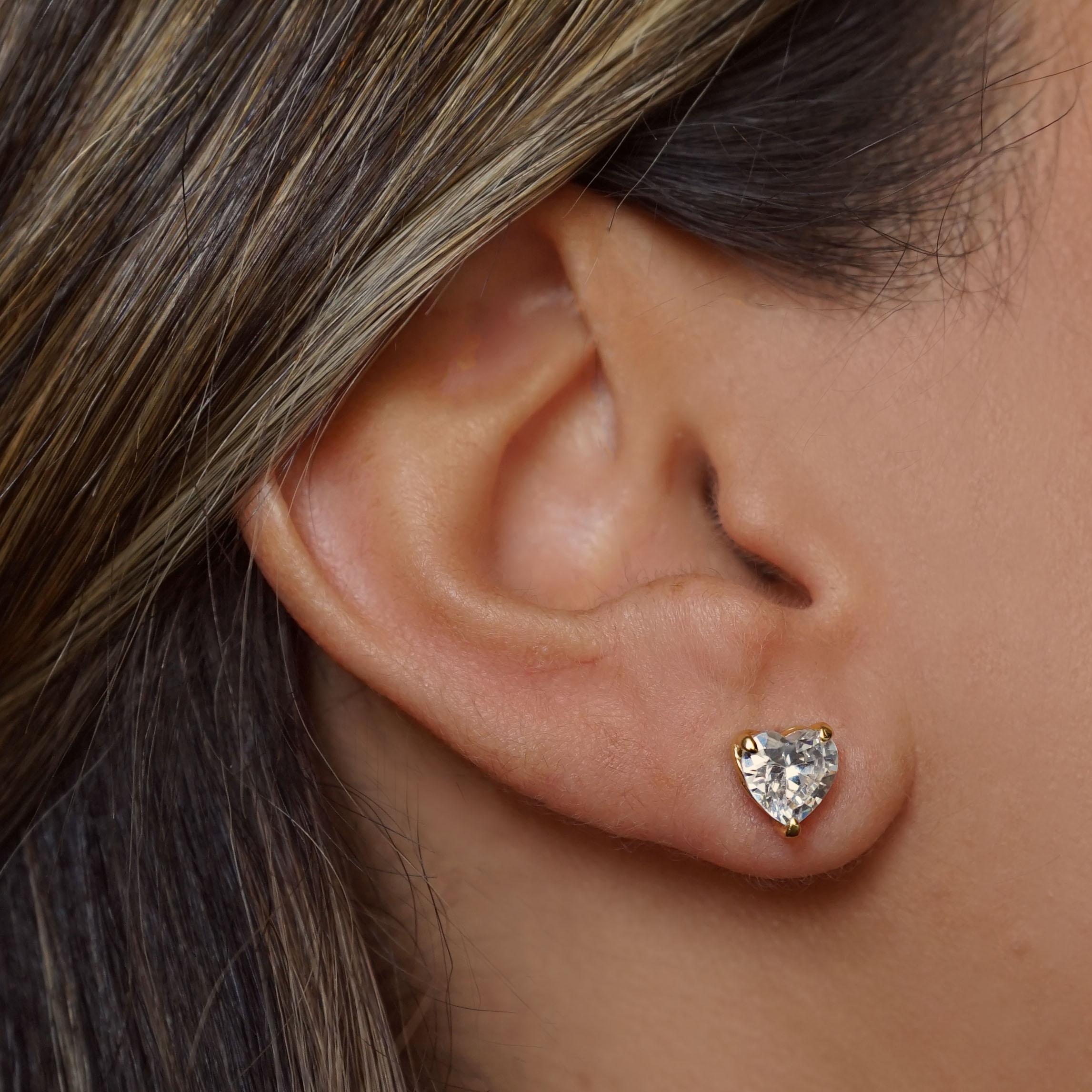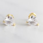 ARETES DE PLATA 925 CON BAÑO DE ORO AMARILLO, CIRCÓN EN FORMA DE CORAZÓN COLOR BLANCO