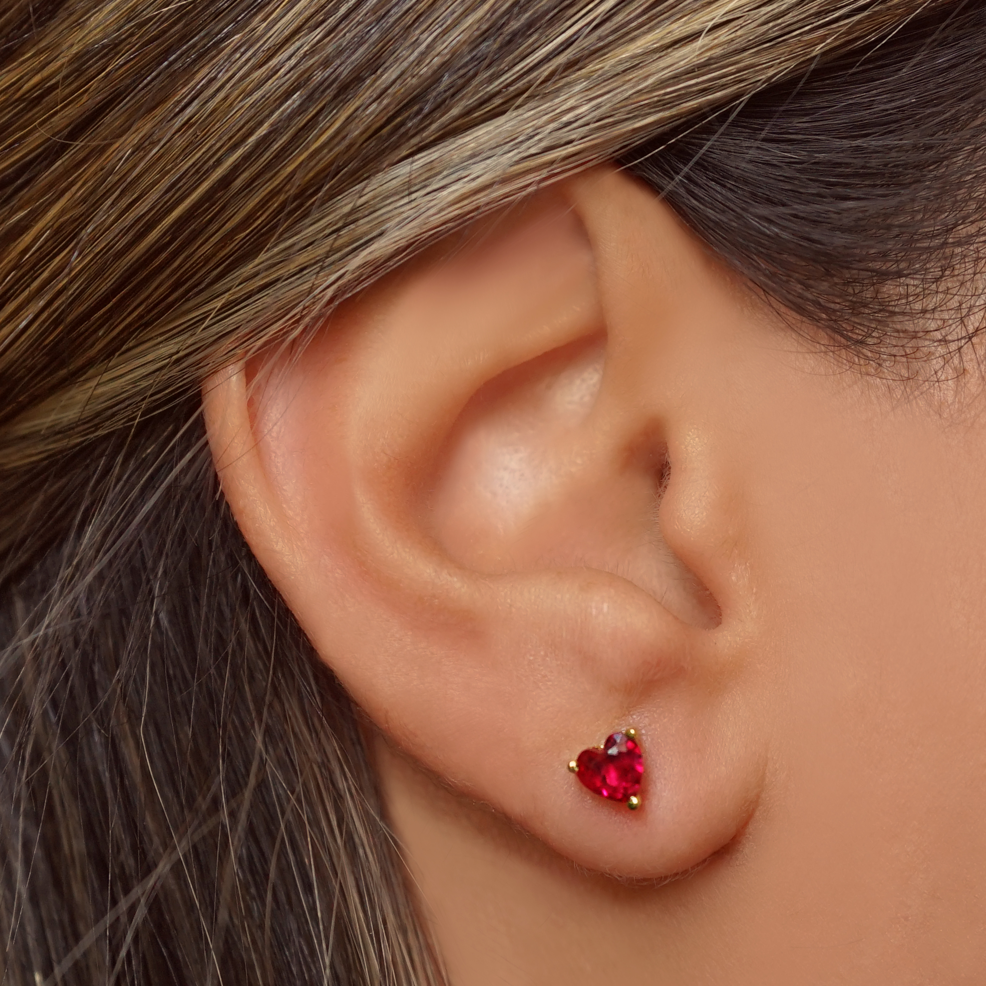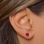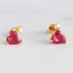 ARETES DE PLATA 925 CON BAÑO DE ORO AMARILLO, CIRCÓN EN FORMA DE CORAZÓN ROJO