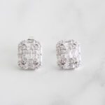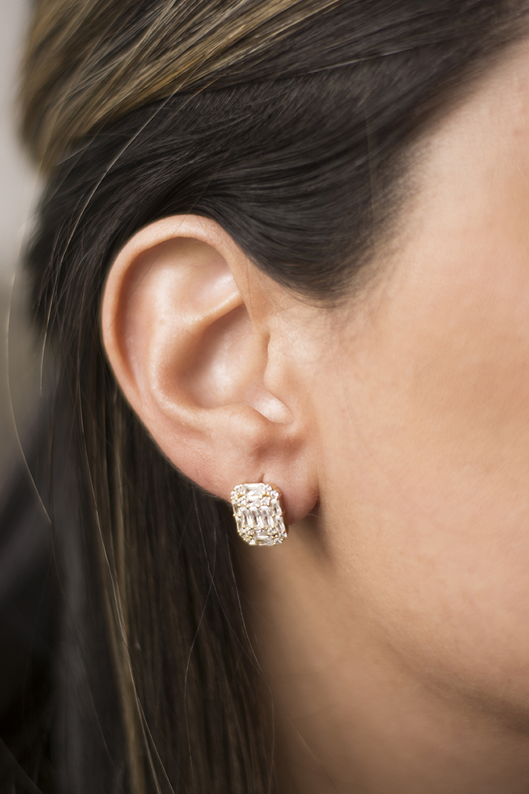 ARETES DE PLATA 925 CON BAÑO DE ORO, DISEÑO CUADRADO CON CIRCONES BAGUETTES