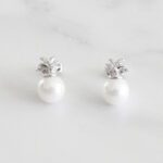 ARETES DE PLATA 925 CON BAÑO DE ORO DISEÑO DE PIÑA, HOJAS CON CIRCONES Y PERLA