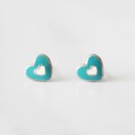 ARETES DE PLATA 925 CON BAÑO DE ORO, DISEÑO DE CORAZÓN ESMALATADO CELESTE Y BLANCO