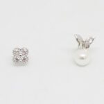 ARETES DE PLATA CON BAÑO DE ORO MARIPOSA CON PERLA Y TRÉBOL DE CIRCÓN