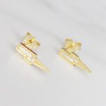 ARETES DE PLATA 925 CON BAÑO DE ORO AMARILLO, RAYO CON CIRCONES
