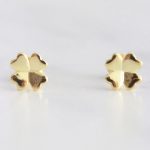 ARETES DE PLATA 925 CON BAÑO DE ORO AMARILLO, DISEÑO DE TRÉBOL CUATRO HOJAS SENCILLO