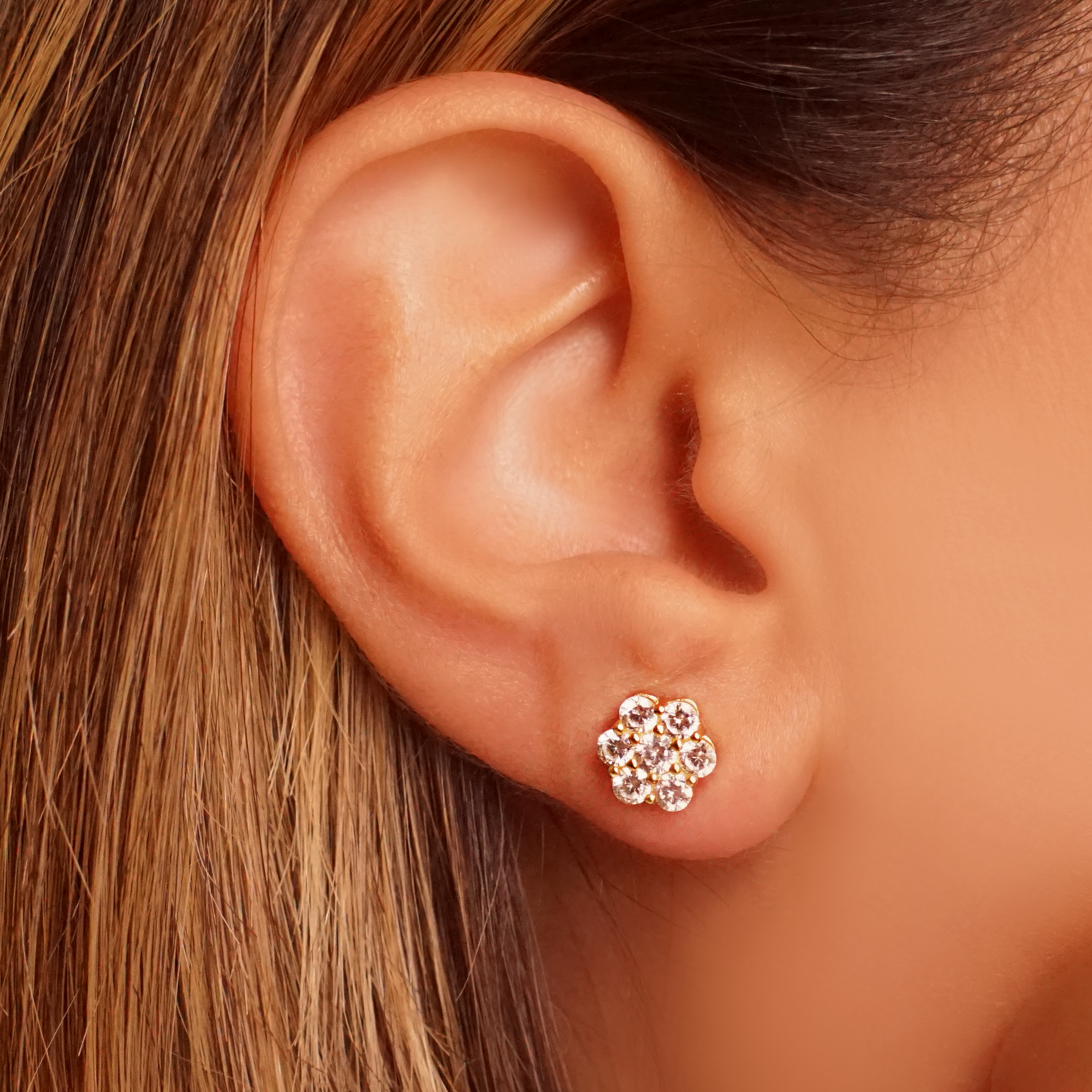 ARETES DE PLATA 925 CON BAÑO DE RODIO, FORMA FLOR Y CIRCONES