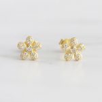 ARETES DE PLATA 925 CON BAÑO DE ORO AMARILLO, DISEÑO DE FLOR PAVÉ DE CIRCONES