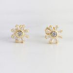 ARETES DE PLATA 925 CON BAÑO DE ORO AMARILLO, FLORES DE CIRCONES BAGUETTES