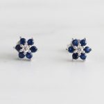ARETES DE PLATA 925 CON BAÑO DE RODIO, DISEÑO DE FOLOR Y PÉTALOS DE CIRCONES EN COLOR AZUL