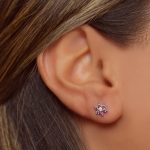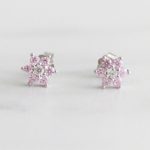 ARETES DE PLATA 925 CON BAÑO DE RODIO, DISEÑO DE FLOR Y PÉTALOS DE CIRCONES EN COLOR ROSADO