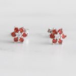 ARETES DE PLATA 925 CON BAÑO DE ORO, DISEÑO DE FOLOR Y PÉTALOS DE CIRCONES EN COLOR NARANJA