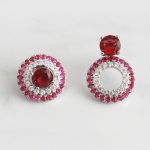 ARETES DE PLATA 925 CON BAÑO DE ORO, REDONDO CIRCONES BLANCOS Y BORDE DE CIRCONES ROJOS