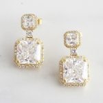 ARETES DE PLATA 925 CON BAÑO DE ORO AMARILLO, CIRCONES CUADRADOS Y BORDE DE CIRCONES