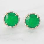 ARETES DE PLATA 925 CON BAÑO DE ORO AMARILLO, CIRCON RESINA VERDE REDONDO CON BORDE DE CIRCONES GRANDES