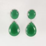 ARETES DE PLATA 925 CON BAÑO DE ORO CON GOTAS DE CIRCONES VERDES Y BORDE DE CIRCONES