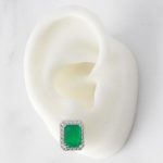 ARETES DE PLATA 925 CON BAÑO DE RODIO, CIRCÓN VERDE RECTANGULAR CON BORDE PAVÉ CIRCONES PEQUEÑOS