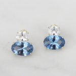 ARETES DE PLATA 925 CON BAÑO DE ORO AMARILLO, CIRCONES OVALADOS CELESTE Y BLANCOS