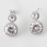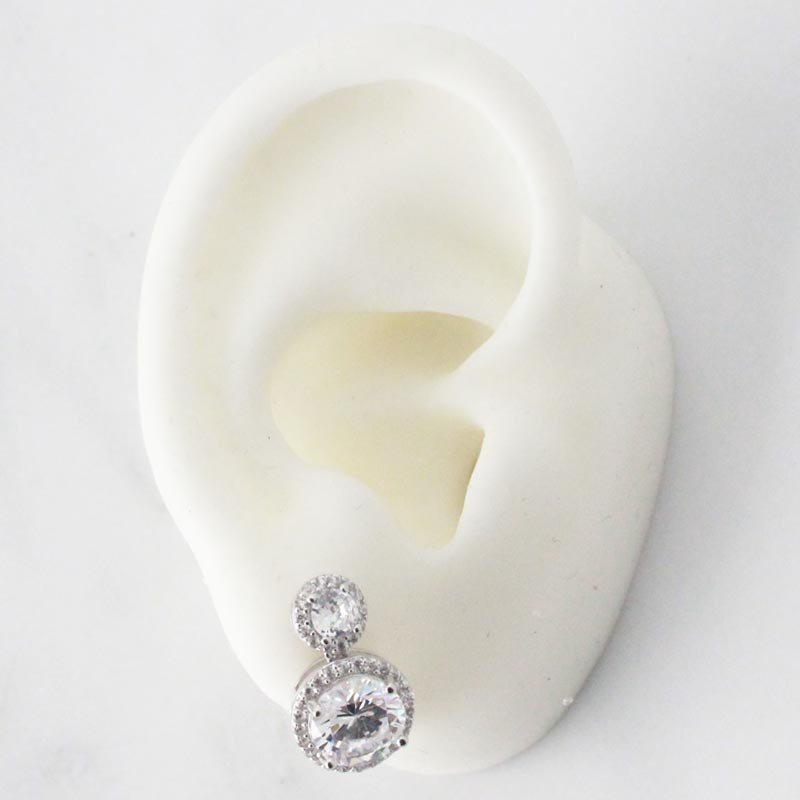 ARETES DE PLATA 925 CON BAÑO DE RODIO, DOS CIRCONES PEQUEÑOS REDONDOS BLANCOS CON BORDES DE CIRCONES