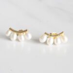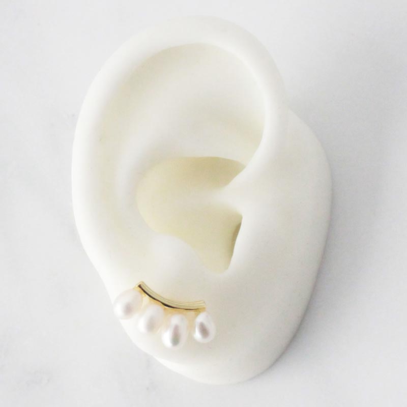 ARETES DE PLATA 925 CON BAÑO DE ORO AMARILLO, TREPADORES Y PERLAS