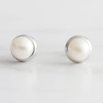 ARETES DE PLATA 925 CON BAÑO DE RODIO, PERLA CON BORDE LLANOS