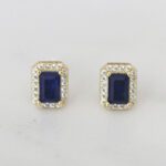 ARETES DE PLATA CON BAÑO DE ORO AMARILLO CUADRADO DE CIRCÓN AZUL Y BORDE DE CIRCONES