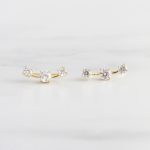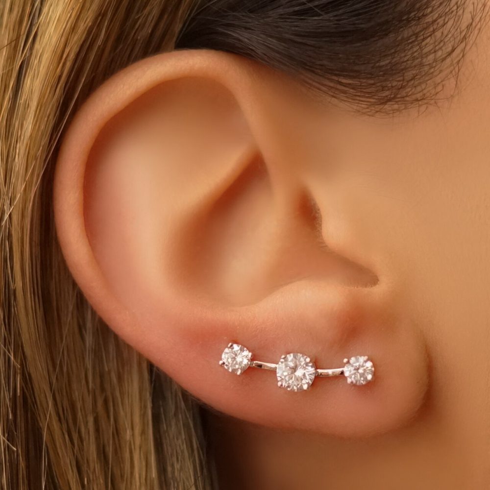 ARETES DE PLATA 925 CON BAÑO DE ORO AMARILLO TIPO TREPADOR CIRCONES REDONDOS SEPARADOS