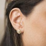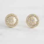 ARETES DE PLATA 925 CON BAÑO DE ORO AMARILLO, DISEÑO REDONDO DE CIRCONES BAGUETTES