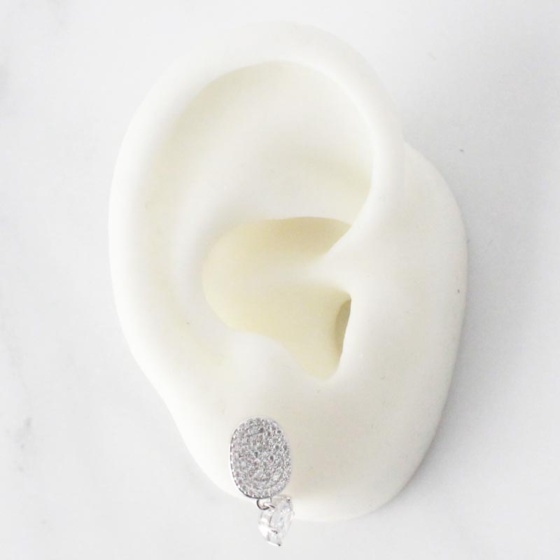 ARETES DE PLATA 925 CON BAÑO DE RODIO, RUEDA PAVÉ DE CIRCONES CON CIRCON COLGANDO