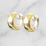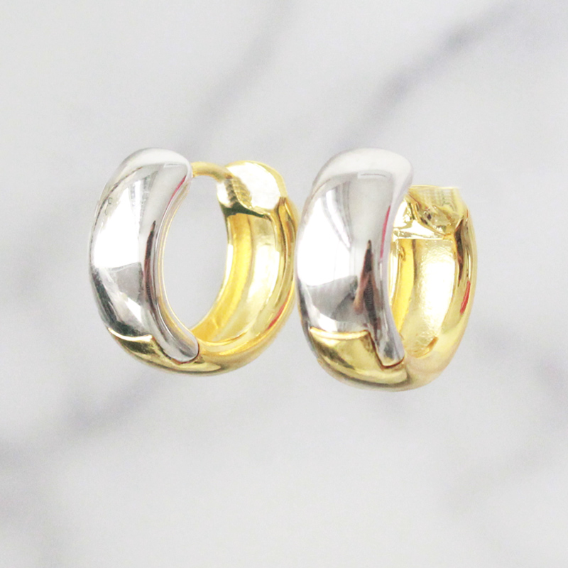 ARETES DE PLATA 925 COMBINADAS BAÑO DE RODIO Y BAÑO DE ORO AMARILLO, LLANAS DOBLE LADO