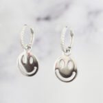 ARETES DE PLATA 925 CON BAÑO DE RODIO,ARGOLLA CON DIJE DE CARITA FELIZ