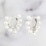 ARETES DE PLATA 925 CON BAÑO DE RODIO, ARGOLLAS MEDIANAS Y PERLAS SALTADAS