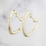 ARETES DE PLATA 925 CON BAÑO DE ORO AMARILLO, ARGOLLAS EN FORMA DE CORAZÓN PAVÉ DE CIRCONES