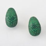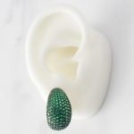 ARETES DE PLATA 925 CON BAÑO DE ORO AMARILLO, MEDIA ARGOLLA PAVÉ DE CIRCONES VERDES